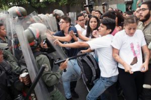 24/04/2017 – In Venezuela è in atto un vero e proprio massacro da parte delle forze armate nei confronti di migliaia di cittadini scesi in strada per protestare contro il governo. L’opposizione, maggioritaria in parlamento da fine 2015, chiede a gran voce le dimissioni del presidente-dittatore Nicolas Maduro che però non ha alcuna intenzione di mollare la presa e non si fa problemi a sguinzagliare i suoi agenti armati contro la popolazione. Particolarmente temuti sono inoltre i cosiddetti collettivi armati, veri e propri gruppi di squadroni della morte che si aggirano per le vie del Paese con lo scopo di assaltare i manifestanti.
