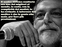 Il nostro sistema sanitario era uno dei migliori al mondo, la casta, con la complicità dei medici, lo ha rovinato. L’interesse del medico è che la gente stia male, per fare più prestazioni. Ma nove milioni di persone non hanno più accesso alla sanità. Io eliminerei tutto questo. Ecco perché nessuno mi ha mai chiesto di fare il ministro della Sanità. A me piacerebbe in futuro aprire anche in Italia il primo ospedale di Emergency, per far rivedere agli italiani, dopo 30 anni, che cos’è un ospedale, non una fottuta azienda. La sanità è uno scandalo pubblico”