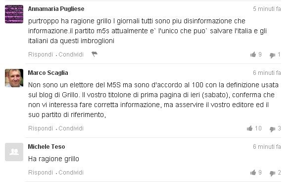 I lettori di Repubblica si sono schierati con Grillo. Ecco alcuni commenti all’articolo citato sopra: