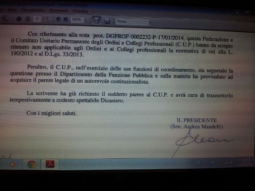 Questo emendamento è concomitante anche ad una nota (vedi la foto in basso) che lo stesso Mandelli come Presidente dei farmacisti (pur firmandosi come senatore) ha inviato in risposta ad una circolare del Ministero della Salute che invitava gli ordini ad adeguarsi alle norme sopra citate. Con tale nota il senatore di Forza Italia informa il Ministero, con una sfrontatezza disarmante, che le norme sull’anticorruzione non si applicano agli ordini, millantando pareri di avvocati non ben identificati.